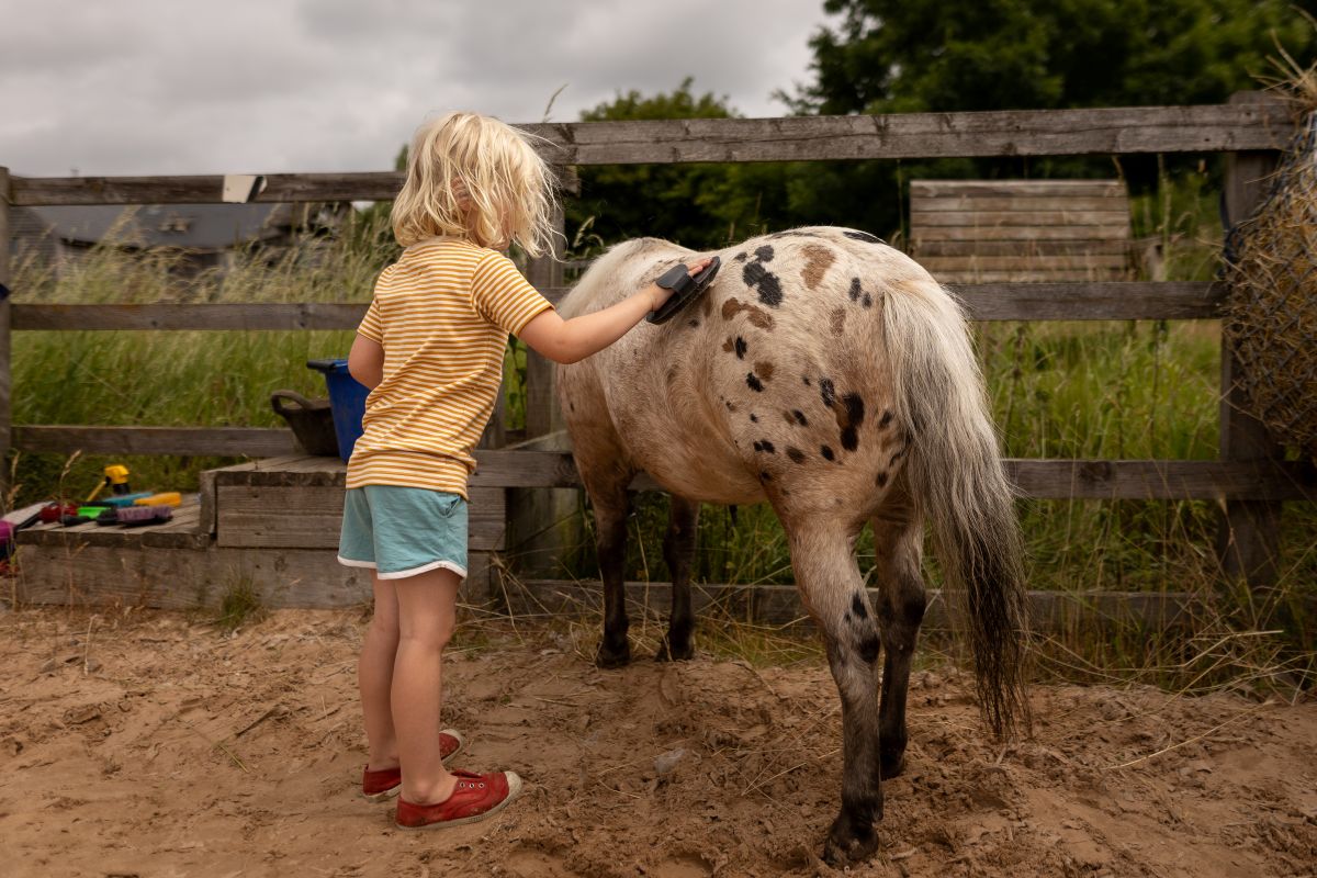 Het dagelijkse boerenleven vormt hier het decor. Kinderen kunnen meehelpen met kleine dagelijkse taken, zoals het voeren van dieren, kijken bij de stallen of simpelweg spelen in de buitenruimte. Er is ruimte om hutten te bouwen, te rennen of stille plekjes te zoeken voor een middag picknick.