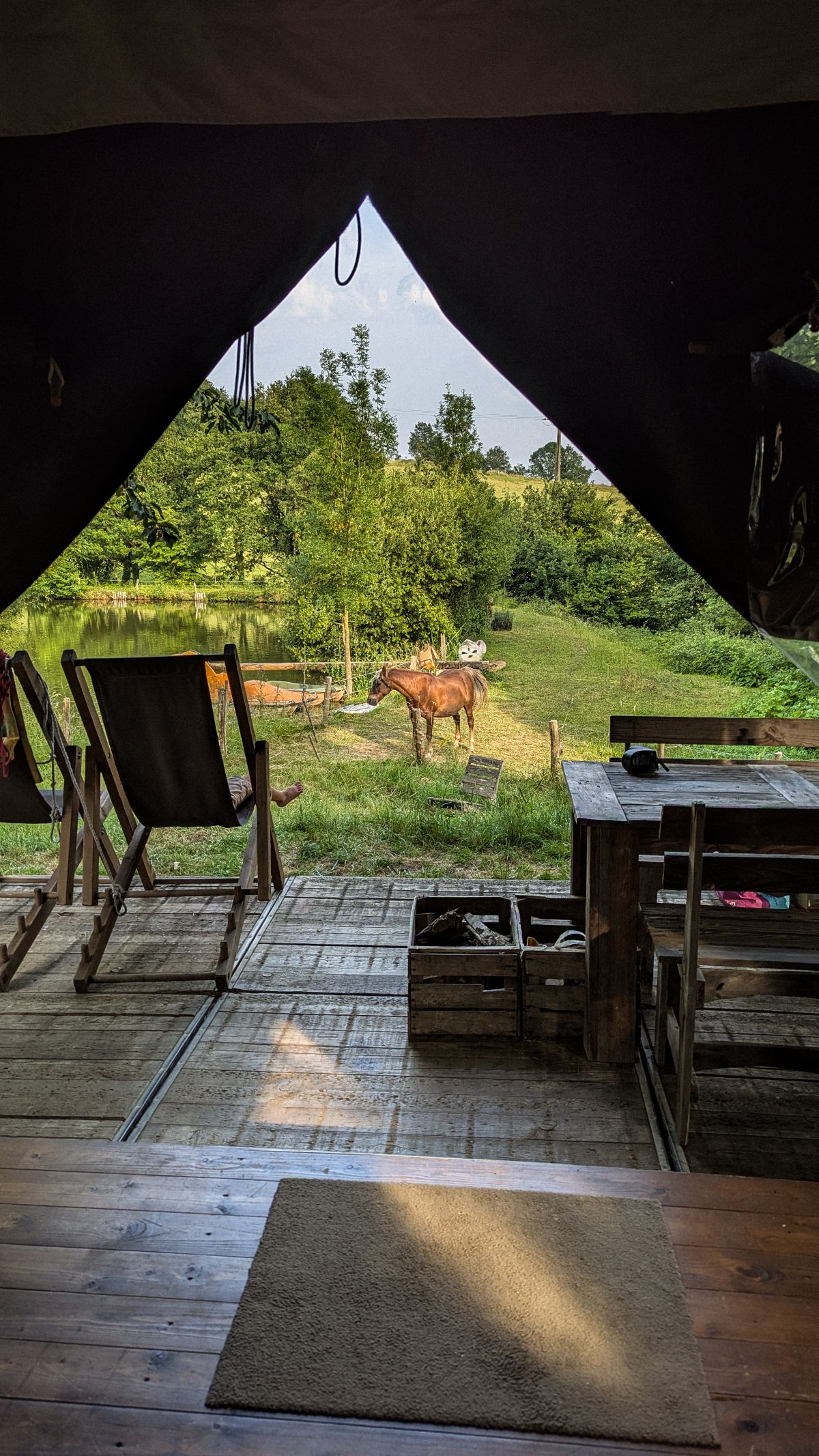 L’Étable des Mauges en Anjou ligt in de regio Pays de la Loire, vlakbij het dorp La Poitevinière (Beaupréau-en-Mauges), en is een melkveeboerderij waar je vakantie viert midden op het erf.Op het terrein staan zes tenthuisjes voor 4–6 personen, ruim opgezet rond de stallen en de weides. Je merkt hier meteen dat je op een echte boerderij bent: de koeien worden verzorgd, er wordt gewerkt op het land en kinderen mogen overal meekijken. Voor kinderen is dit een plek waar ze vanzelf hun eigen wereld maken. Ze kunnen helpen met dieren voeren, kijken bij de stal of spelen op de trampoline en in de zandplek. Vaak ontstaan er kleine rituelen: ’s ochtends even naar de dieren, daarna samen op pad over het erf of met nieuwe vakantievriendjes een hut bouwen. De omgeving is rustig en overzichtelijk. Het dichtstbijzijnde dorp met bakker en kleine winkels ligt op ongeveer 10 minuten rijden. De stad Nantes bereik je in circa 45 minuten en is leuk voor een dagje met markt, kasteel en brede pleinen. De Anjou staat bekend om zijn zachte landschap met rivieren en kastelen, waardoor je uitstapjes makkelijk kunt afwisselen met dagen op de boerderij.