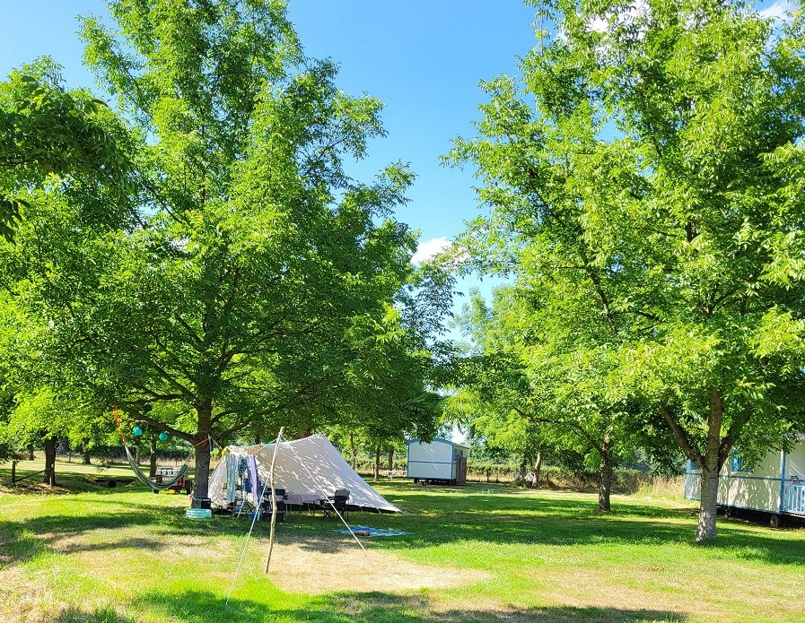 Veel van onze kampeerplekken zijn gelegen onder onze walnoten- en eikenbomen. Hierdoor is er lekker schaduw. Ze zijn allemaal ruim en groen.