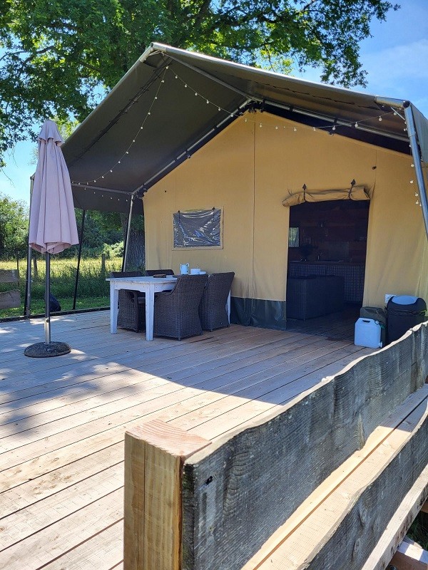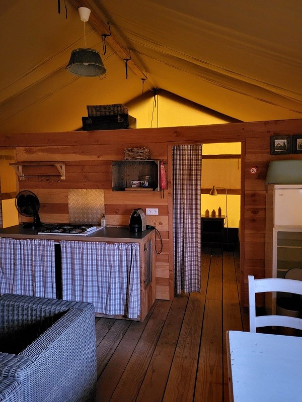 • 4 ingerichte safaritenten (2 voor 4p waarvan 1 met privé sanitair en 2 voor 5p waarvan 1 met privé sanitair)