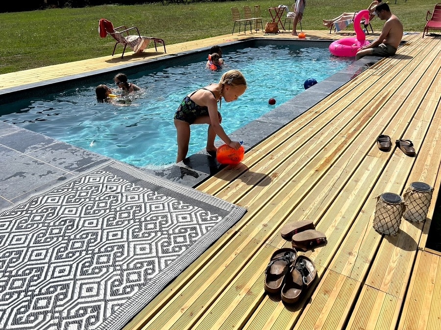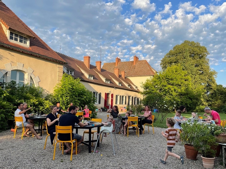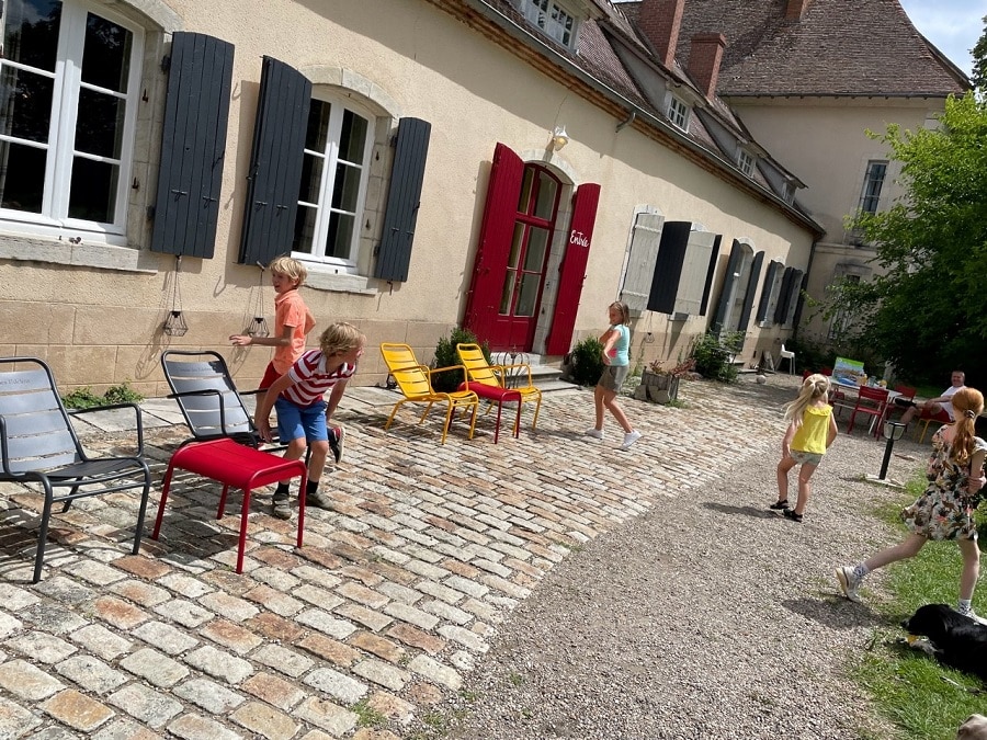 Er is hier volop ruimte, maar toch is het kleinschalig; er zijn hier nooit meer dan zo’n 20 gasten. Voor Nienke hoort bij een ontspannen vakantie ook lekker en goed eten; ze heeft een moestuin en gelukkig ook buurmannen met moestuinen, een goede slager voor lokaal vlees van gelukkige dieren en ze zitten in een prachtig wijngebied. Nienke biedt dan ook (bijna) iedere avond table d’hôte waar gasten echt voor terugkomen (en dat vindt zij dan weer een mooi compliment). Dat kan hier met of zonder kinderen, dat kun je gewoon afspreken. Kinderen kunnen vooraf eten, zodat je zelf later op de avond samen aan tafel kunt. Maar dat hoeft niet, want tijdens de vakantie met de hele familie aan tafel is natuurlijk ook gezellig! En tussendoor kan er best gevoetbald worden…