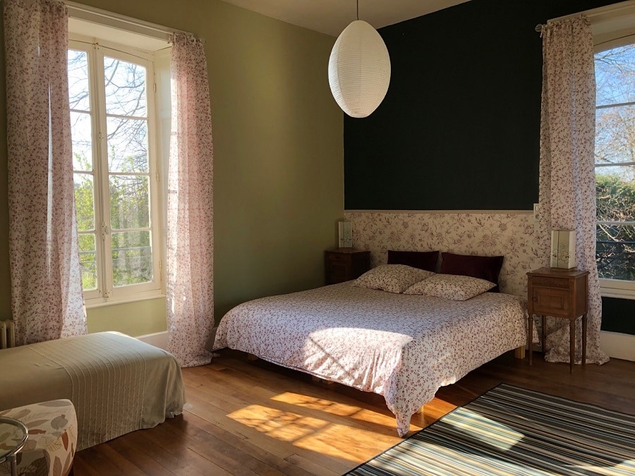 De (familie-)kamers en gites zijn groot en hoog, met veel licht, moderne grote bedden en altijd uitzicht op de tuin. Alle kamers hebben een eigen badkamer en zijn incl. ontbijt. Er zijn 2 kamers voor 2-3p, 2 voor 2-4p en 1 voor 2-5p. De kamers voor 2-3p en voor 2-4p kunnen tot FamilieVleugels worden samengevoegd. Je hebt dan als gezin/familie je eigen privé vleugel met 2 kamers, 2 badkamers, een hal en een koelkastje. De gites zijn geschikt voor 5p + 1 baby. De ene bevindt zich in het château op de begane grond met eigen ingang en openslaande deuren naar het terras en de andere is een vrijstaand huis in de tuin met een eigen ommuurde tuin.