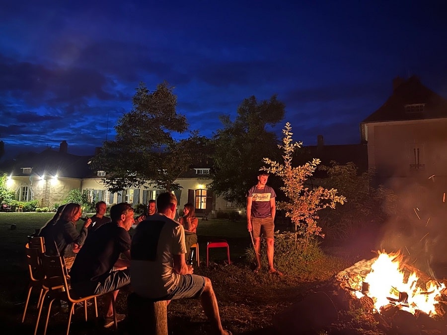 Château des Edelins is een jachtkasteeltje uit 1638 in het midden van Frankrijk waar vooral ruimte en ontspanning belangrijk zijn. de tuin met een kindvriendelijk zwembad (maar ook als volwassene kan je hier leuk in zwemmen) is met 4 hectare echt groot en heeft een boomgaard waar je ook goed hutten kunt bouwen. Er zijn schommels, een glijbaan, genoeg gras voor voetbal, spannende schuren en gebouwtjes, lekkere stoelen waar je heerlijk een boek in kunt lezen, een goed terras. En als het kan, wordt er ‘s avonds een fikkie gestookt. Eigenaresse Nienke is er dol op ;-)… Of wordt er buiten gekookt.