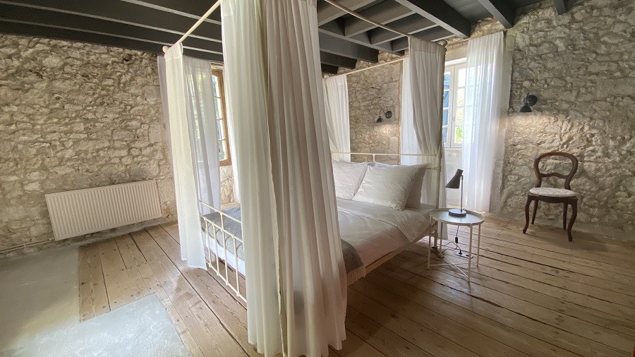 Aan het hoofdhuis grenst ook nog een gîte. Deze is beschikbaar voor groepen die samen op vakantie zijn, maar toch graag een stukje privacy willen voor 2 personen (eventueel met een klein kindje). Het hoofdhuis en de gîte worden nooit tegelijk aan twee verschillende reisgezelschappen verhuurd.