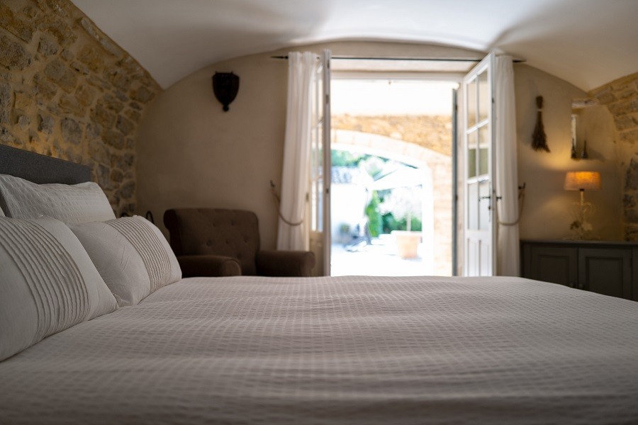 De gîte heeft een woonoppervlakte van ca. 75 m2 (binnenzijde), 2 terrassen waarvan een terras aansluit aan de woonkeuken (met een zonoverkapping) en een terras aan de masterbedroom. Dit terras biedt heerlijke verkoeling in de zomer omdat het overdekt is en het heeft uitzicht op het zwembad; ideaal voor gezinnen met jongere kinderen. De ingangen van de tuin zijn voorzien van metalen poorten. Het verwarmde zwembad is 10×5 meter en heeft een diep en ondiep gedeelte en is voorzien van een drenkeling alarm. De gîte bevindt zich op de gehele benedenverdieping van het vakantiehuis.