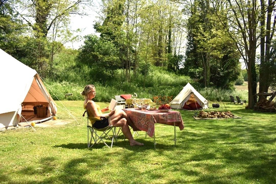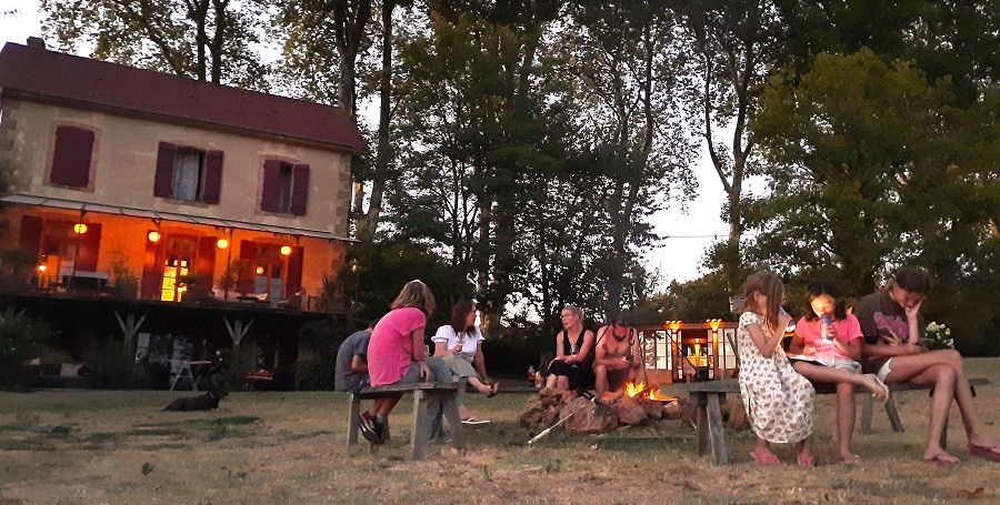 Het is hier echt genieten van het buitenleven! Er is een ruime tuin met veel zitjes, een zwembad, je kunt samen buiten eten aan lange tafels, je kunt lekker bij het kampvuur zitten onder de sterrenhemel en de omgeving biedt heel veel moois om te ontdekken.