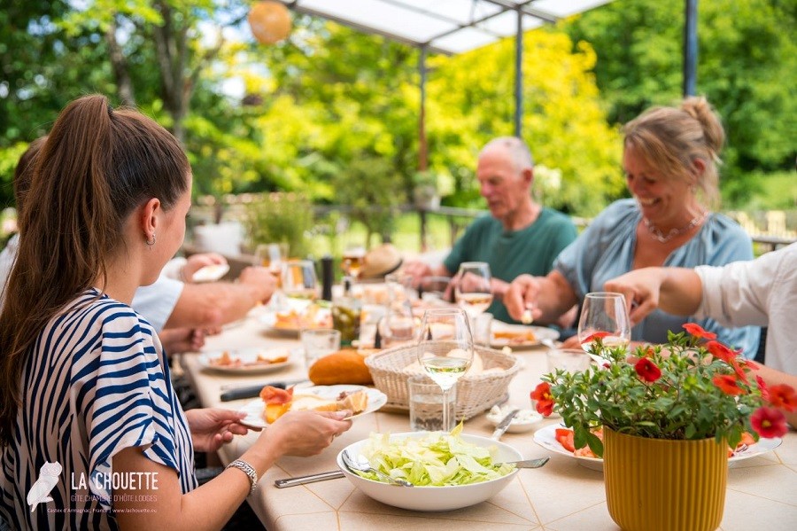 Je kunt regelmatig deelnemen aan de table d’hôte en er wordt ook gekookt boven het vuur waarbij je van harte welkom bent om mee te helpen. Ook bezorgt de bakker uit het dorp iedere ochtend, behalve op maandag, vers brood. En voor een ijsje of een gekoeld drankje staat er een “bar de confiance”. Alle consumpties die je neemt, houd je zelf bij en reken je later af.