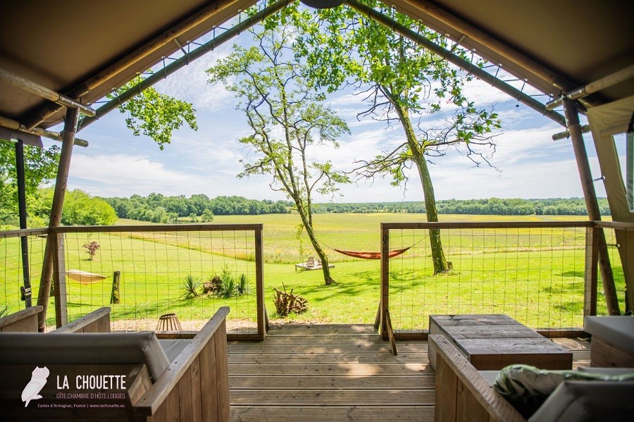 La Chouette is een kleinschalig en kindvriendelijk domein in de Gers in de Midi-Pyrenees (Occitanië). Je kunt hier kamperen in alle luxe in een ruime Safari Lodge met een overdekt terras en loungeset of avontuurlijk kamperen in de Tipi-tenten en koken op een houtvuur. Er is ook nog een schattig 2p huisje: La Petit Maison, een tiny house. Liever overnachten in het huis? Dat kan natuurlijk ook. Kies dan voor de gîte of overnacht in de chambre d’hôte. Alle accommodaties hebben eigen sanitaire voorzieningen en een vrij uitzicht over de heuvels. Het is ook mogelijk om La Chouette als groep (max. 18p, meer in overleg) af te huren. Vraag eigenaren Hans en Suzanne naar de mogelijkheden.