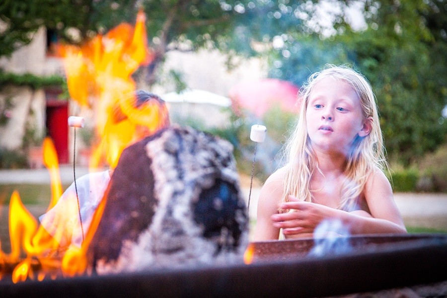 Jan haalt ‘s morgens broodjes, en er wordt een pot koffie gezet voor de gasten die graag met een kopje koffie wakker willen worden; het is altijd gezellig. Op zondag (maar ook op verzoek) wordt er een geweldig zondagochtendontbijt georganiseerd onder de hangar, in het zonnetje. Door de week is er een pizza-avond (je mag zelf zeggen waarmee je je pizza’s wilt beleggen) en een gezamenlijke maaltijd. En op verzoek wordt er een lekkere maaltijd bereid als je een keer niet zelf wilt koken. En kinderen, ouders en grootouders eten gewoon samen. Naar goed Frans gebruik kunnen de kinderen ook tussendoor heerlijk spelen trouwens. En ze vinden elkaar ook weer rondom het kampvuurtje met de marshmallows.
