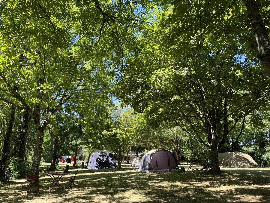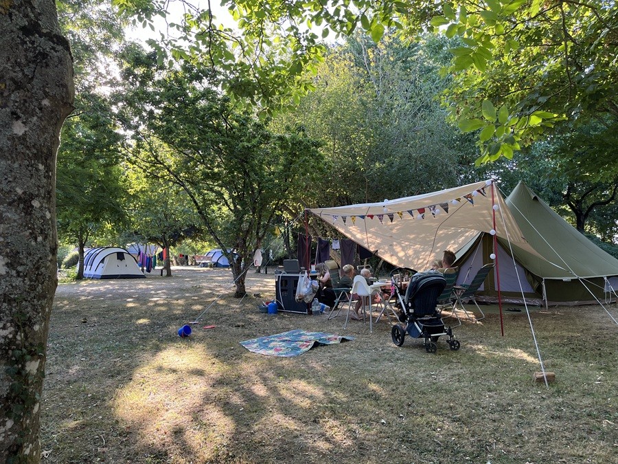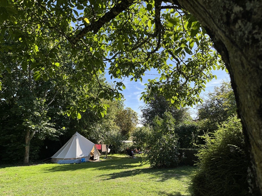 De camping biedt ruime plaatsen aan zes tot tien tenten, campers of caravans. Het tiny house bevindt zich achteraan op het campingterrein. De oude fruitbomen (niet handig op een camping) zijn vervangen door bomen die bij alle campingplaatsen voldoende schaduw bieden en waar je op meerdere plekken je hangmat kunt vastknopen.