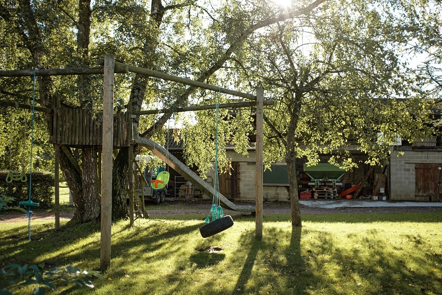Beide accommodaties bevinden zich aaneengeschakeld op het erf van de boerderij en dat is natuurlijk leuk! Als gast kun je namelijk (bijna) altijd een kijkje nemen op de boerderij. Er zijn: melkkoeien, 2 geiten, kippen, een pony, katjes en 2 honden. Een paradijs voor de kinderen die ook gebruik mogen maken van de aanwezige fietsen, trampoline, glijbaan, schommels enz. En natuurlijk is het genieten van de verse melk en eieren, die de kinderen zelf mee mogen rapen. Een groot feest is het ook om ‘s avonds met zijn allen de koeien uit de wei te halen (vergeet je laarzen niet!)