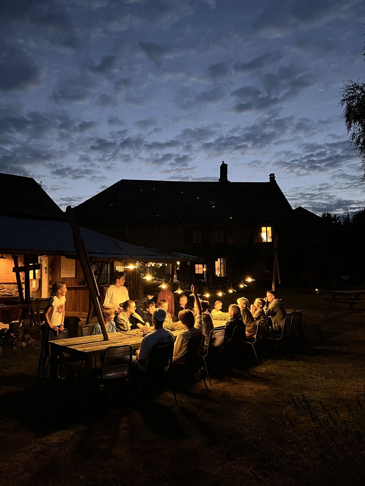 In de twee gezellige buitenwoonkamers (veranda’s) is het heerlijke toeven overdag maar ook ‘s avonds. Ook kun je aan de lange tafels spelletjes spelen; ganzenborden, kwartetten, risken of lekker een boek lezen. Aan het eind van de dag is het heerlijk om ‘s avonds bij het kampvuur te zitten en de vele, miljoenen sterren te bekijken, een spelletje weerwolven te spelen of naar een mooi verhaal te luisteren.