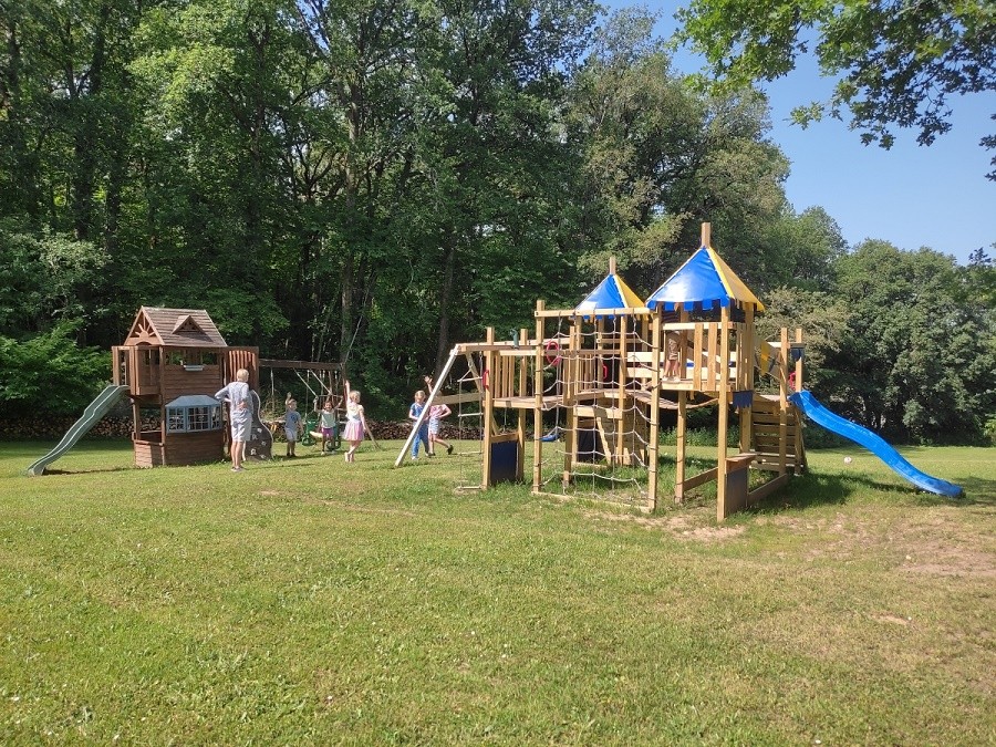 Dit landgoed van 3 ha is een paradijs voor kinderen! Naast een bos, een verwarmd zwembad en een peuterbad, vind je hier: een speelschuur, een kinderclub, speeltuinen, boerderijdieren (geiten, konijnen en kippen) en veel speelgoed en -ruimte. Er is een trampoline, een jeu-de-boules baan, een pingpongtafel en er zijn glijbanen en schommels. Het domein is volledig omheind, dus kinderen kunnen vrij spelen in de tuin of binnenplaats, onder de verantwoordelijkheid van de ouders natuurlijk.