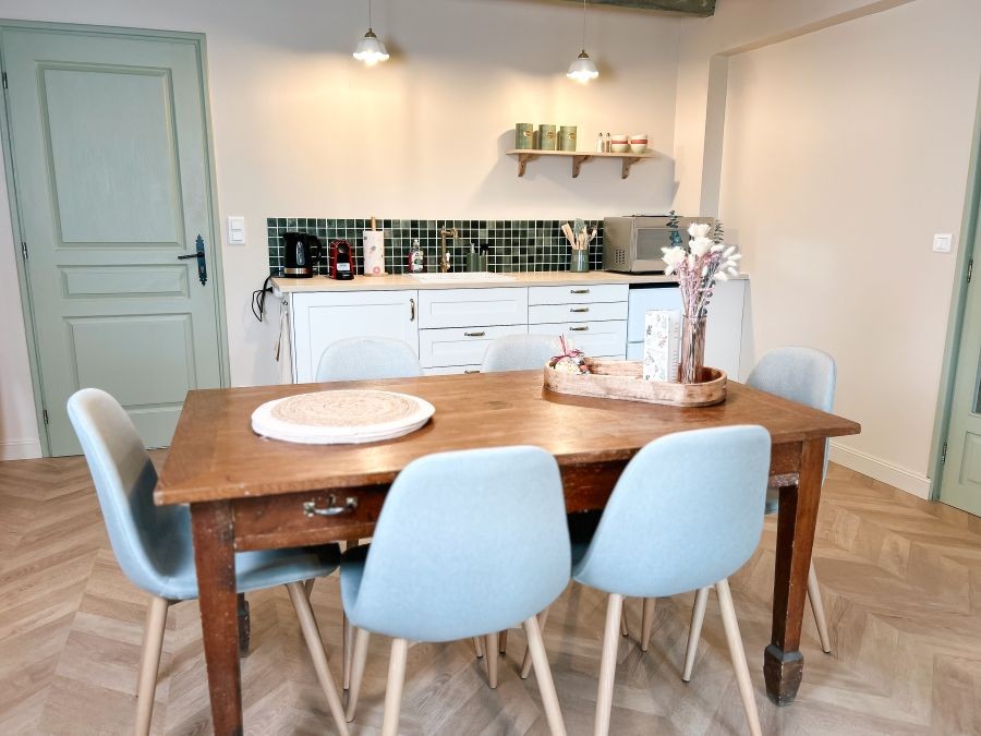 Loft la Bergerie is een charmante hideaway met een open en knusse sfeer! De loft heeft een open indeling met een sfeervolle woonkamer en een goed uitgeruste keuken op de begane grond. De keuken beschikt over een elektrische oven, een koelkast met vriesvak, een waterkoker en een Nespresso-machine voor een heerlijk kopje koffie in de ochtend.