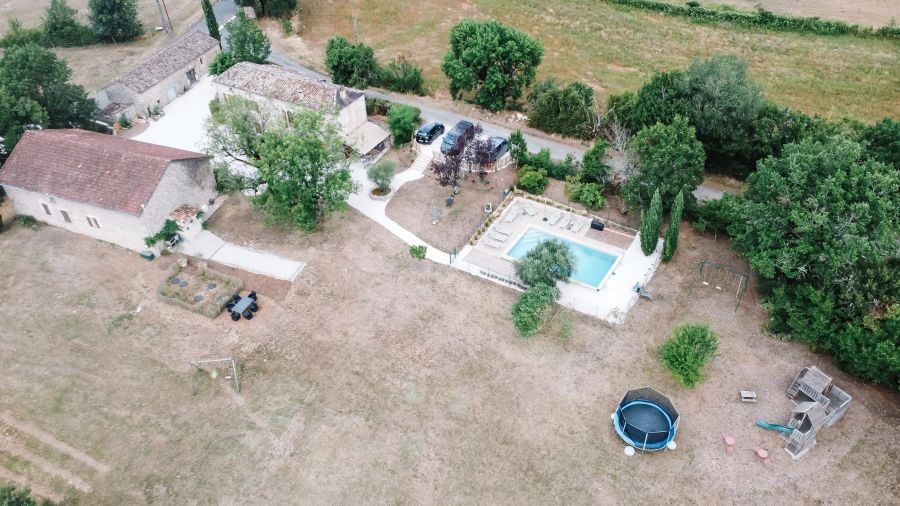 Kleinschalig en kindvriendelijk domein tussen de wijnvelden, aan de rand van het sfeervolle dorpje Cambayrac (Lot, Zuidwest Frankrijk)