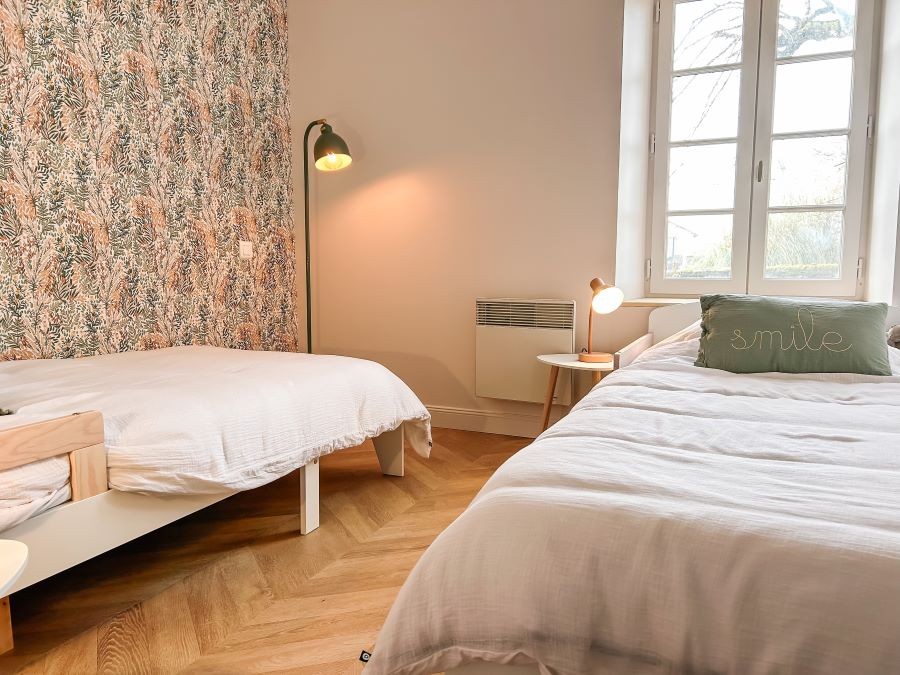 De suite beschikt over drie slaapkamers: één met een tweepersoonsbed, één met twee eenpersoonsbedden en één met een gezellig stapelbed. Het beddengoed is heerlijk comfortabel en zorgt voor een goede nachtrust. De badkamer, met zijn nostalgische charme, heeft een douche en een dubbele wasbak. Voor extra gemak is er een apart toilet aanwezig, en handdoeken liggen al voor je klaar.