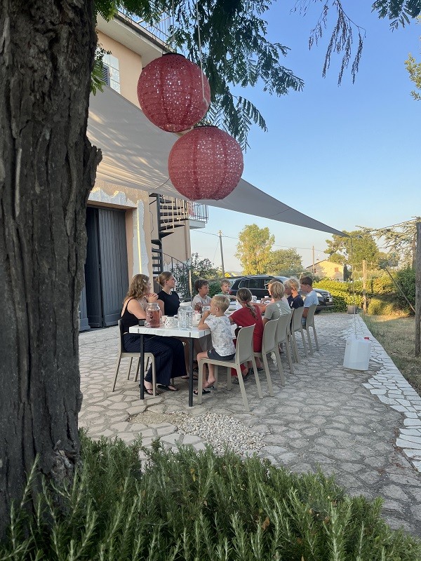 Midden in de natuur kamperen met je eigen tent of in een appartement of toch liever in een comfortabele kamer met een heerlijk ontbijtje? Dat kan allemaal bij Agriturismo Villa Bussola! De kinderen zullen zich hier snel vermaken in het kinderopzetzwembad, in de speeltuin en tijdens de teken- of knutselwedstrijden die regelmatig georganiseerd worden. Op het terrein van 3,5 ha. kun je in de hangmatten onder de olijfbomen relaxen of vanaf de top van de heuvel van het prachtige uitzicht genieten. ‘s Ochtends worden de verse broodjes voor de gasten bij de lokale bakker gehaald en ‘s avonds, terwijl de kinderen gezamenlijk spelletjes spelen, kun je aan de grote houten tafel buiten met alle andere aanwezige gasten van een glas goede wijn genieten en mooie gesprekken hebben. Wekelijks wordt er een wijnproeverij georganiseerd waarbij iedereen na afloop een pastagerecht kan komen eten. Het Italiaanse diner op het terras van de bar in het dorp, op loopafstand van Villa Bussola, is wekelijks een groot succes: de kinderen hebben hun eigen tafel en kunnen, nadat ze een ijsje hebben gehad, in het speeltuintje in het parkje gaan spelen. Je kunt je hier zeker niet vervelen: de mooie zandstranden met de blauwe zee zijn op 15 min afstand, in een half uur ben je in de bergen waar je eindeloos kunt wandelen, de indrukwekkende middeleeuwse dorpen zullen je laten fantaseren over het leven in het verleden, de prachtige oude stad Ascoli Piceno zal je betoveren en het duiken in de verfrissende rivierwateren zal je niet snel vergeten… Je vindt op korte afstand ook een klimpark in het bos, een waterpretpark met glijbanen, een kartbaan, veel marktjes om te bezoeken, kleurrijke dorpsfeesten, heerlijke restaurants, mooie wandelpromenades, interessante musea, etc.. Villa Bussola is de perfecte uitvalbasis voor het ontdekken van al het moois dat Italië te bieden heeft!