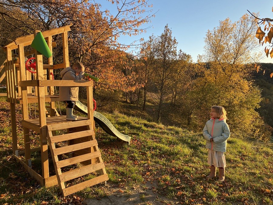 Het terrein van Ca’ Pasquin is wel 12ha groot. Er is een groot opzetzwembad met uitzicht op de vallei en eigenaren Femke en Bart verbouwen hier o.a. verschillende groentes, fruit en kruiden. Ook lopen er een aantal dieren rond: poezen, drie grote lieve honden, konijnen en een aantal kippen.