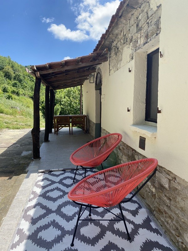 18m2 tiny house voor 2p met tweepersoonsbed, aparte badkamer met douche in ander gebouw, eigen terras en prachtig uitzicht op de vallei en bergen. Perfect te combineren / reserveren met “La Fattoria”.