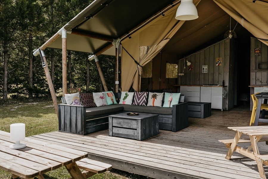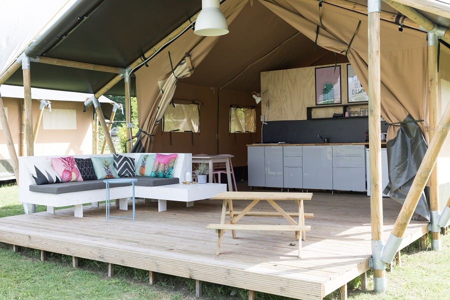 • Safaritenten XL met eigen sanitair en vaatwasser (tot 6 personen)