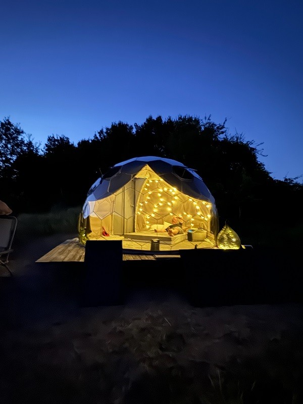 – The Cyber Dome (2p): een ronde tent met airco op de heuvel met een geweldig uitzicht en volledige privacy
