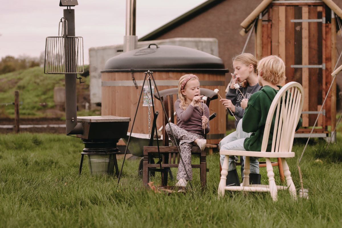 BoerenBed Het Keelven ligt bij Someren in Noord-Brabant en is een plek waar alles draait om paarden.De tenthuisjes staan achter op het terrein van de manege, met uitzicht op de rijbak en de weilanden. Kinderen worden hier vanzelf onderdeel van het dagelijkse leven met pony’s: borstelen, voeren, kijken bij de lessen en – wanneer er plek is – zelf een ritje maken. Het erf voelt overzichtelijk en vriendelijk. Naast de stallen is er een gezamenlijke ruimte en een brasserie waar je overdag kunt aanschuiven voor koffie, lunch of een eenvoudige maaltijd. Buiten is een kampvuurplek en een kleine speeltuin, zodat kinderen ook zonder programma hun eigen gang kunnen gaan. Het dorp Someren met winkels en bakker ligt op ongeveer 5 minuten rijden. Direct naast de locatie begint natuurgebied De Heihorsten, een afwisselend gebied met bos en heide waar je kunt wandelen zonder de auto te pakken.
