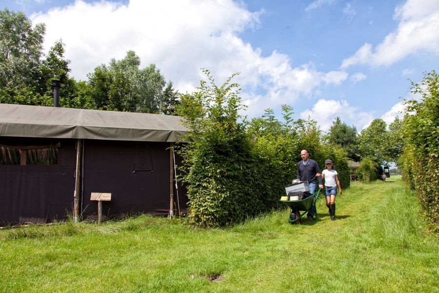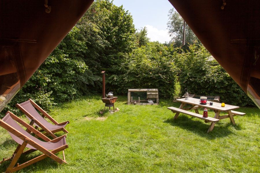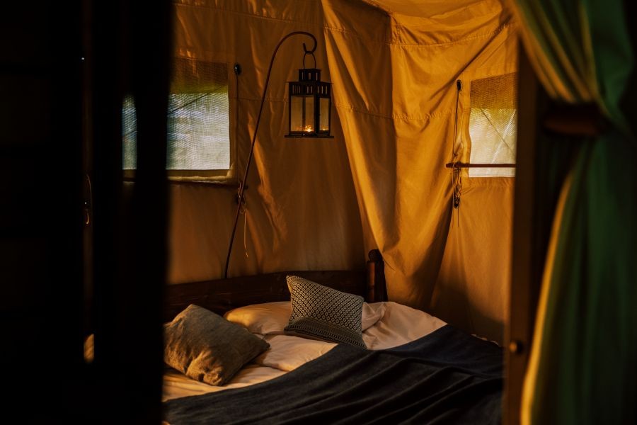• 4 tenthuisjes met houtkachel en privé douche naast de tent