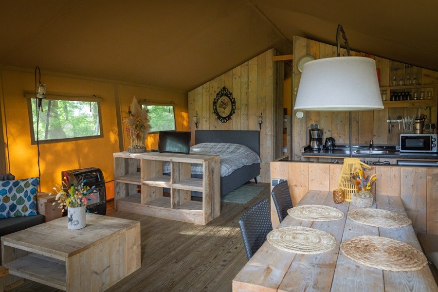 • 2 luxe safaritenten (5p) met badkamer en vaatwasser in de keuken