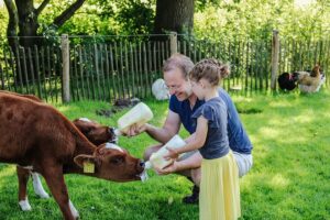 Verblijven in een mooie, compleet ingerichte en luxe safaritent of farmlodge. Kinderen zijn er dol op! Het stapelbed, de ruime tent, de heerlijke stortdouche, de gezelschapsspellen en al die ruimte! De kinderen vermaken zich de gehele dag buiten; van trampoline, naar schommel, even voetballen en dan weer een leuke hut maken in het bos. Aan het eind van de middag kan er nog geholpen worden bij de kalfjes en koeien.