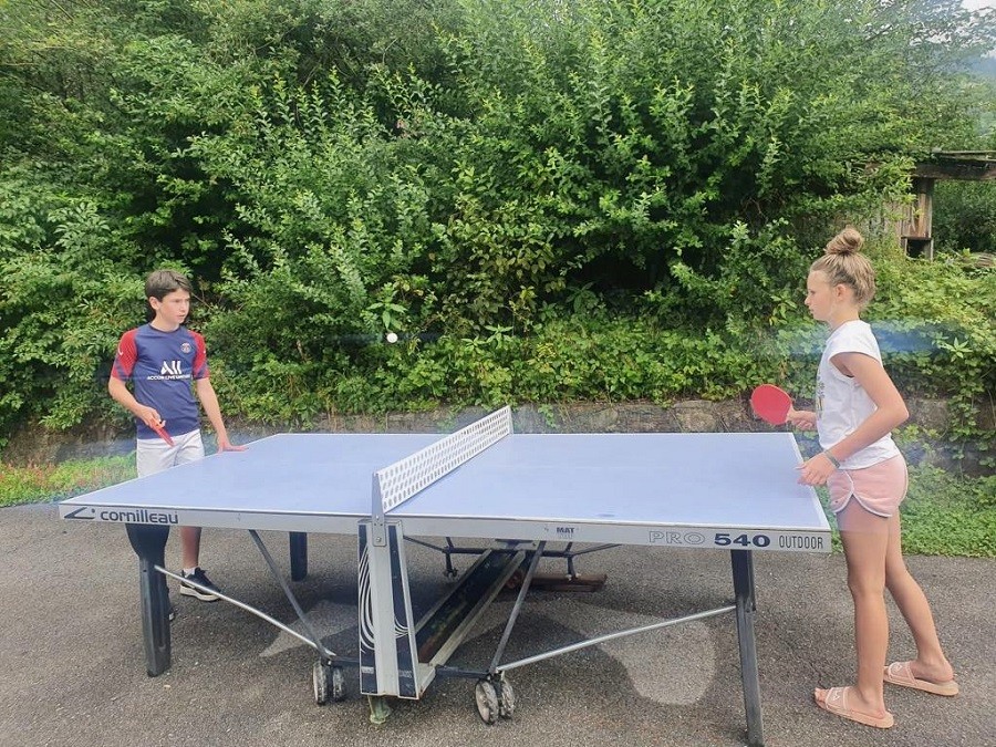 In de zomer is er veel ruimte in de zonnige tuin waar de ouders lekker kunnen relaxen in één van de vele zithoekjes, terwijl de kinderen heerlijk kunnen zwemmen, tafeltennissen, voetballen, spelen in de speeltuin, of bij de rivier.