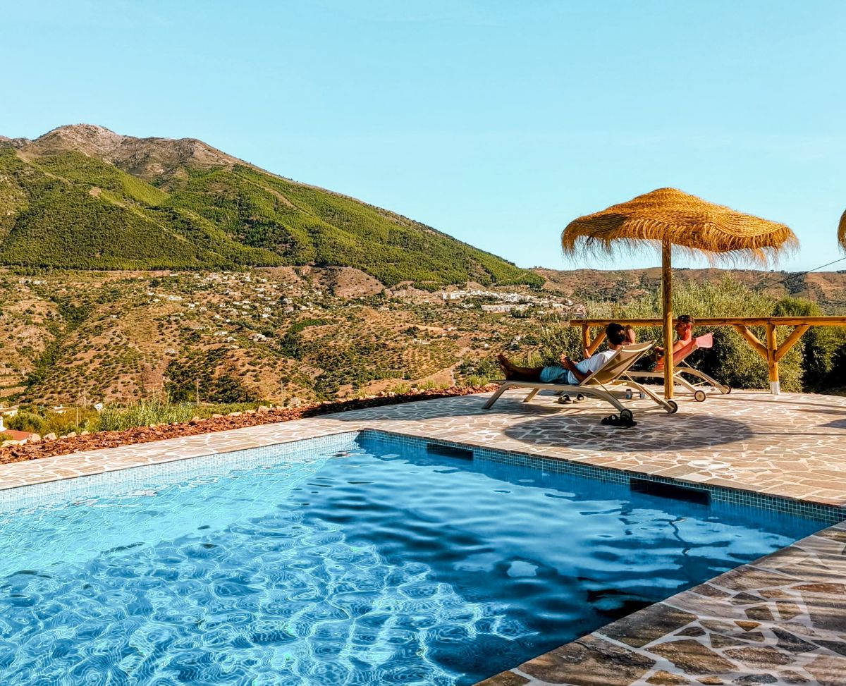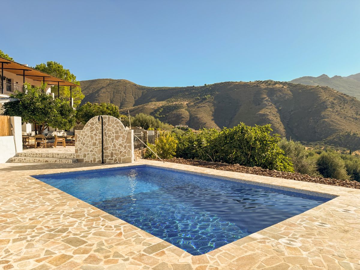 Finca Pilarejo ligt rustig in de heuvels bij het witte dorp Alcaucín in Andalusië. Je verblijft hier tussen olijf- en fruitbomen met uitzicht op de bergen.
