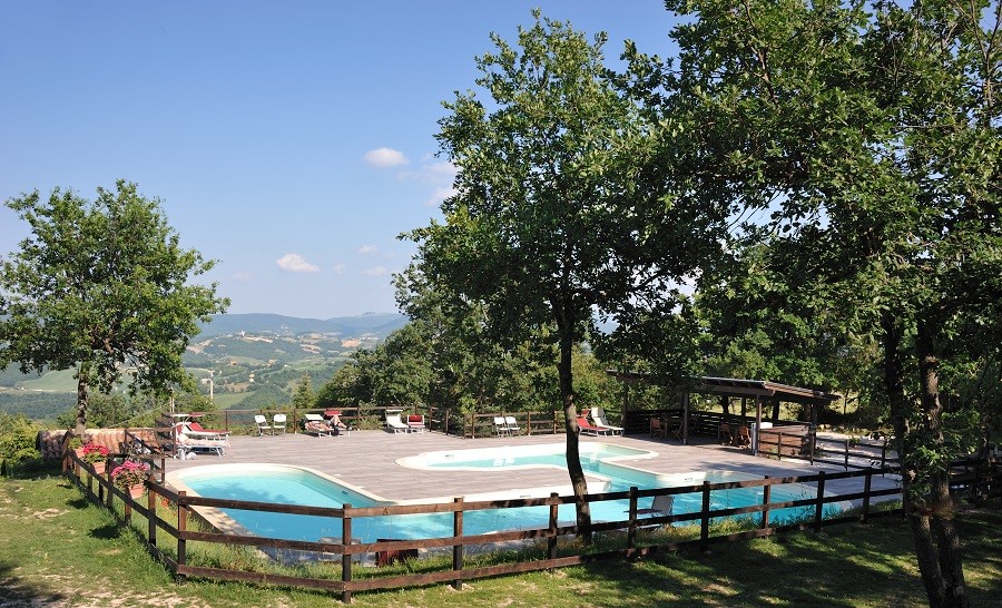 Casale il Sogno is gelegen op 5 km van het middeleeuwse dorp Pietralunga in Noord-Umbrië in de ‘boven Tiber vallei’, tussen Città di Castello, Gubbio en Cagli (De Marken). Het landhuis il Sogno ligt op 750 meter hoogte. Casale il Sogno is een kleinschalige locatie met veel persoonlijke aandacht. Rond het huis ligt een grote tuin met veel privacy. Er is een zwembad met een kinderbad en een speeltuin voor de kleintjes. Voor de grotere kinderen is er een tafeltennistafel en zijn er voetbaldoeltjes. Direct langs het landgoed lopen mooie gemarkeerde wandelingen, geschikt voor jong en oud. Twee keer per week wordt er een diner georganiseerd, deze wordt bereid door een Italiaanse kokkin uit het dorp. Jeroen, Willianne & hun kids bedienen de gasten, maar schuiven zelf ook aan om mee te eten. De kinderen kunnen, indien gewenst, om 18:00 uur al eten. Elke week is er een wijnproeverij waar je acht Umbrische wijnen kunt proeven, terwijl de kids heerlijk worden vermaakt. Elke vrijdag steken we de pizza oven aan voor een Pizza-Proeverij en kun je bij aankomst zo aanschuiven voor een Pasta & Salade aan de lange tafels zonder na te hoeven denken over de boodschappen. Wil je zelf een middag of avondje op pad, dan passen we graag op de kinderen! Tip: neem niet te veel van huis mee, want Casale il Sogno verzorgt kinderstoelen, -bedjes en -speelgoed. Dat hoef je dan niet mee te slepen… Lekker makkelijk toch? Willen jullie graag je trouwe viervoeter ook meenemen op vakantie, deze is bij ons van harte welkom!