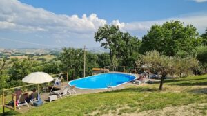 Bij Agriturismo Camping Vista Fermo in Le Marche draait alles om een geweldige vakantie-ervaring voor het hele gezin. Of je nu wilt ontspannen en tot rust wilt komen of juist op zoek bent naar avontuur en plezier, hier is voor ieder wat wils. Voetballen tot je erbij neervalt, trampoline springen tot je duizelig bent, zwemmen in het verfrissende opzetzwembad of gewoon heerlijk chillen op één van de lekkere plekjes die de camping rijk is. Vista Fermo is een kleinschalige camping met in totaal 24 plekken. Er zijn 16 plekken tussen de olijfbomen of op het veld met uitzicht over “la campagna” speciaal voor tenten of vouwwagens. Kom je met je camper, caravan of bus dan zijn daarvoor 6 prachtige plekken ingericht. Je kunt ook een sfeervolle Casa Mobile of een stoere safaritent huren. Op de camping vind je 2 gloednieuwe sanitairgebouwen. Er is 1 gebouw waar je 4 douches, 4 toiletten en 4 wastafels vindt. Ook is er buiten een plek om af te wassen. Op de andere plek vind je een mooie familiebadkamer met een dubbele douche en genoeg ruimte om je om te kleden zonder dat alles nat wordt. Ook is er in dit gebouw een aangepaste sanitaire ruimte aanwezig voor mindervalide gasten. Deze badkamer is compleet ingericht met douche, wastafel en wc. Hier is ook een fijne (koele) speelruimte met een lekkere bank om een boek te lezen, veel speelgoed, spelletjes en een tafelvoetbal. Op de camping is een opzetzwembad van circa 9x5m en een heerlijke ligweide waar je lekker kunt chillen in de schaduw of genieten van de zon. Het middelpunt van de agriturismo is de bar, de plek om te ontmoeten en te proosten op het heerlijke Italiaanse leven! Hier is ook WiFi. Rondom de bar worden er activiteiten georganiseerd voor het hele gezin, zoals: gezellige eetavonden, een aperitivo, knutselactiviteiten, tafeltenniswedstrijdjes, jeu de boules en kinderyoga. Natuurlijk is er ook een speeltuin met een grote trampoline, schommel, glijbaan en duikelrek. Voor de grotere kinderen is er een speeltoestel met ringen, een bokszak en een rekstok. En natuurlijk is er een voetbalveld op de camping waar we regelmatig een toernooitje organiseren.