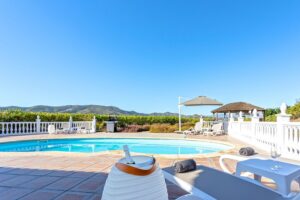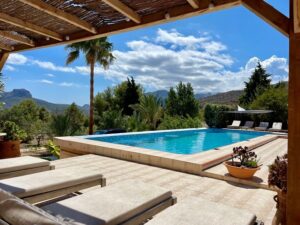 Finca Can Faye is een vrijstaande Spaanse droomvilla gelegen op een paradijselijke plek. Midden tussen de olijfbomen ervaar je volop privacy. Al gelijk wanneer je de oprijlaan betreedt proef je de rust en sereniteit. Je wordt hier wakker met alleen het geluid van vogels. De heerlijk grote ramen zorgen voor volop natuurlijke lichtinval en een panoramisch uitzicht vanuit vrijwel iedere ruimte. Het royale buitenterras is rijk aan tropische planten en kleurrijke bloemen. Rondom het privé zwembad zijn meerdere fijne zitplekjes. Finca Can Faye is bijzonder stijlvol ingericht met gebruik van natuurlijke materialen en volop luxe en comfort. Een plek die daadwerkelijk inspireert. Finca Can Faye is geheel gelijkvloers. Vanwege de grote ramen en vele wit tinten hebben de eigenaren volop lichtinval gecreëerd. De sfeervolle woonkamer met open keuken heeft een sofa, fauteuils en een televisie. De royale eethoek met uniek panoramisch uitzicht is misschien wel de fijnste plek van allemaal. De keuken beschikt o.a. over een koelkast, vriezer, elektrische kookplaat, vaatwasser, voldoende keukengerei etc. Er zijn drie slaapkamers, waarvan twee met 2-persoonsbed (160 x 200) en een met twee 1-persoonsbedden (90 x 200). Alle drie de badkamers zijn ruim met een douche, toilet en wastafel. De badkamers hebben aparte heaters en radiatoren voor het drogen van de handdoeken. Er zijn horren aanwezig voor de ramen van de badkamers. Uitstekende wifi is aanwezig en airconditioning (warm/koud) is aanwezig in alle ruimtes. In een aparte ruimte buiten staat een wasmachine en droger. Verwarming: pellet kachel en airco (warm/koud). In de zeer ruime tuin ligt het privé zwembad (8 x 4 m) met daar omheen vier fijne ligbedden en zitjes onder de rieten parasols. Het zwembad heeft diverse zwembad accessoires waar je gebruik van kan maken. Er is een overdekt terras met royale eethoek met acht stoelen waaronder je kunt genieten van gezamenlijke maaltijden. Er zijn maar liefst twee barbecues aanwezig. Daarnaast is er nog een fijne lounge bank buiten. Je blijft je hier verwonderen over het mooie weidse uitzicht en alle olijfbomen rondom je.