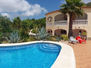 Villa Margaret is een vrijstaande woning met twee verdiepingen en geeft je een gevoel van thuiskomen. Bij binnenkomst voelt de huiselijke sfeer comfortabel aan en bij het openen van de terrasdeuren naar buiten zal het betoverende uitzicht iedereen even stil maken. Hier is het genieten van de schoonheid van het groene en bergachtige landschap. In de woon-/eetkamer tref je een gezellige open haard, satelliet televisie met Nederlandse zenders en een eigen wifi-aansluiting (adsl). De keuken is zeer volledig uitgerust en voorzien van o.a. een afwasmachine, combi-magnetron, koelkast, diepvriezer, 4-pits gasstel en koffiezetapparaat. Eén van de meest fraaie ruimten van deze villa is het overdekte terras (in het Spaans naya), waar de grote granieten tafel staat. Gecombineerd met het adembenemende uitzicht dé ultieme plek voor sfeervolle diners. Op de begane grond vind je 2 slaapkamers, deze bestaan elk uit twee 1-persoonsbedden en riante inbouwkasten. Tussen deze twee slaapkamers is de tweede badkamer die voorzien is van een douche, wastafel en toilet. In alle slaapkamers en in de woonkamer is airco aanwezig. De ouderslaapkamer vind je op de bovenverdieping en bestaat uit een 2-persoonsbed met hoge kwaliteit matrassen en inbouwkasten. Deze slaapkamer beschikt over een groot terras met uitzicht op de berg Montgó en de vallei. De badkamer ensuite, is een volledig gerenoveerde badkamer voorzien van toilet, bidet, inloopdouche en wastafel. Op deze zelfde verdieping vind je ook de wasruimte met daarin de wasmachine. Buiten is het een eldorado. De villa beschikt over een privé zwembad met ruim terras rondom compleet met een zweefparasol en voldoende terrasmeubelen. Op het terrein van de villa is een af te sluiten parkeerplaats voor twee auto’s. Het gehele terrein van de villa is omheind, zodat je privacy volledig gewaarborgd is.