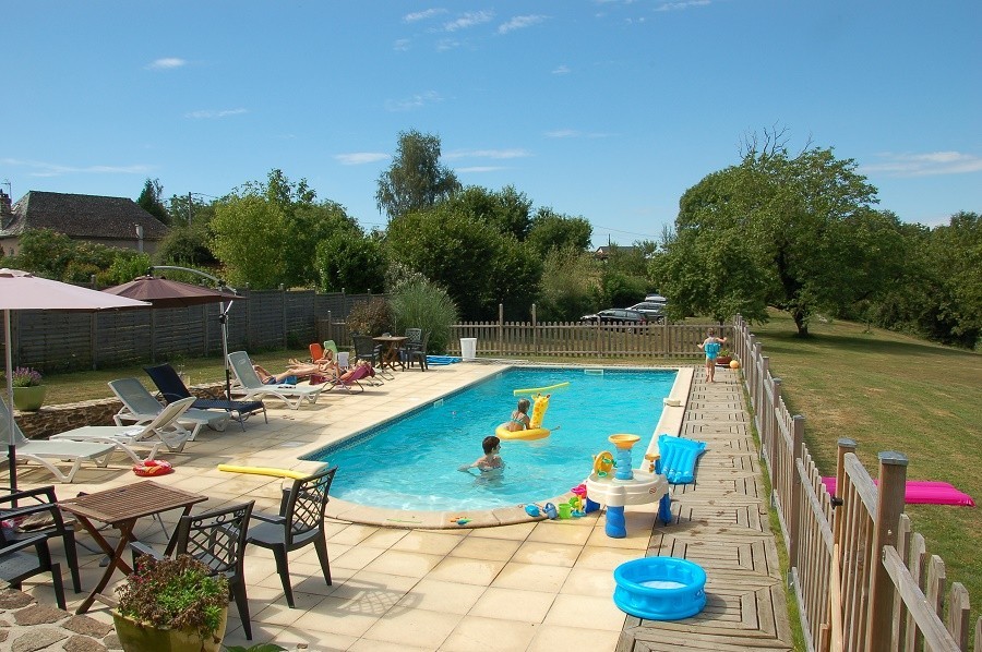 Domaine L´Etoile Dore Village de Vacances is een bijzonder sfeervol, kleinschalig en kindvriendelijk vakantiepark met Nederlandse eigenaren. Een heerlijk vakantiepark in de verrassende Auvergne. Op het Domaine van 4 ha staan een authentieke maison de maître en 10 riante chalets(63m2) met een prachtig uitzicht vanaf de grote terrassen. Een heerlijk vakantieparadijsje met veel faciliteiten. Het ligt in een prachtige, natuurlijke en groene omgeving met veel ruimte en privacy. Bovendien is er in de omgeving genoeg te doen! Er zijn veel wandel- en fietsmogelijkheden, bezienswaardigheden, markten en leuke stadjes. Ook voor kleinere kinderen is het vakantiepark een paradijs. Door het afgesloten zwembad kunnen zij ongestoord overal veilig spelen, en elkaar opzoeken via de vele paadjes die in het hoge gras zijn aangelegd. Ouders kunnen met een gerust hart ook af en toe enkele vrije uurtjes hebben. Kortom: de privacy en ruimte van een vakantiehuis, maar met de faciliteiten van een intiem en sfeervol vakantiepark in een bijzondere omgeving! (Volgens Lonely Planet staat de Auvergne 6e in de Top 10 van meest bijzondere en bezoekwaardige regio’s in de wereld). DE CHALETS: De 10 luxe ingerichte chalets, van meer dan 63 m² bieden een riante leefruimte voor maximaal 5 personen. De chalets beschikken over comfortabele boxspringbedden. Verder is er een ruime living (2 leren zitbanken, dressoir, radio/cd speler), open keuken met grote eettafel, twee slaapkamers, een badkamer met douchecabine, wastafelruimte en separaat toilet met fonteintje. Door het grote aansluitende terras (bereikbaar door 2 openslaande deuren) van 7 bij 2,5 meter en een ruime, natuurlijke tuin die veel privacy biedt, voel je je direct thuis en ook één met de natuur! Vanaf het terras heb je een prachtig uitzicht over de groene heuvelachtige omgeving. Het terras is voorzien van 2 mooie tuinsets met ieder 4 stoelen en 2 ligstoelen. De ruime open keuken is o.a. uitgerust met een oven, koelkast, waterkoker, magnetron en een gaskookplaat. Bedlinnen is al aanwezig en bij de prijs inbegrepen. WAT IS ER TE DOEN OP HET PARK Het vakantiepark biedt veel natuur, rust en ruimte. Binnen dat kader worden ook de volgende faciliteiten en activiteiten aangeboden: – Gezellige bar met biljart – Bibliotheek/Spelotheek – Toeristische informatieruimte – Ruimte met toiletten, wasmachine, droger en strijkgelegenheid – Zwembad van 6 x 12 meter met zonneterras, gazon en ligbedden – Jacuzzi – Sauna – Petanquebaan – Semi-overdekte recreatieruimte/veranda met tafeltennistafel, tafelvoetbal, poolbiljart, dartbord en sjoelbak – Speelterrein met schommels, glijbaan, trampoline en speelveld met badminton/volleybalnet – Dagelijks broodjesservice Op de dag van aankomst kunnen gasten gebruik maken van een welkomstmaaltijd. Wekelijks is er een gezellige ”culinaire” Franse avond, een “frieten-uurtje” en op de donderdag een kampvuur met marshmellows en worstjes voor de kinderen. Omdat de chalets ruim zijn opgezet met rondom tuin en vrije natuur is ook privacy voor iedereen gewaarborgd. Dus ook gasten zonder kinderen, vooral in voor -en naseizoen voelen zich er zeker thuis!