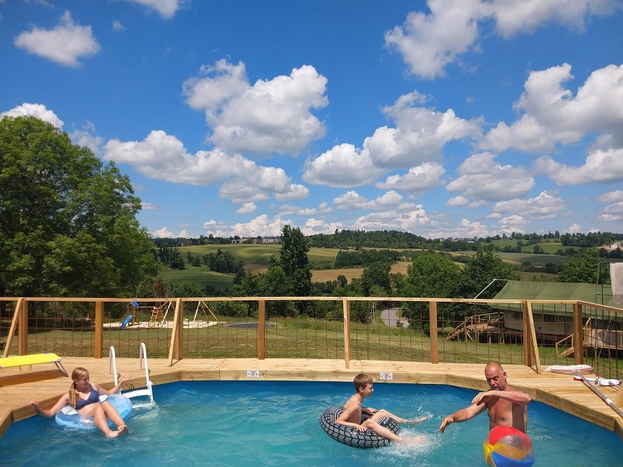 Lézard Vacances is een kleinschalige glamping met een gîte en 6 luxe safaritenten (4-6p). Het ligt in het zonnige Zuid-Frankrijk, departement de Aveyron in de Midi-Pyreneeën, een prachtig stukje Frankrijk dat nog niet door massa´s toeristen wordt overspoeld. De Aveyron heeft o.a. samen met departement de Dordogne de meeste “beaux villages” en je zult dan ook vele mooie dorpjes en bezienswaardigheden vinden niet ver bij de camping vandaan. Je geniet hier van het rustige Franse leven en hebt toch alle comfort en luxe en het ideale vakantiegevoel (glamping). De luxe safaritenten staan op een houten vlonder op een ruime plaats en bieden veel privacy. Iedere tent heeft een prachtig uitzicht over de Franse heuvels. De tenten zijn allemaal volledig ingericht en van alle gemakken voorzien: een privé badkamer met douche, wastafel en toilet in de “oude grange” (op korte afstand van de tenten), een woonkamer met zitgelegenheid, een ruime keuken en 2 slaapkamers, elektriciteit, water en gratis WiFi. Verder is er een zwembad met zonneterras voorzien van ligbedden met uitzicht over de prachtige omgeving en is er een eetgelegenheid met binnen- en buitenterras. Voor de kinderen is er een speeltuin en een grote binnenspeelplaats en er zijn ook dieren. Bovendien worden er in het hoogseizoen diverse activiteiten georganiseerd. Lézard Vacances ligt in een klein, rustig dorpje, Marmont, in Morlhon Le Haut (departement Aveyron in Frankrijk.) De dichtstbijzijnde stad ligt op 8 km afstand, hier vind je alles wat je nodig hebt. Op korte afstand van Lézard Vacances liggen de mooiste dorpjes en ook bergen, heuvels, rivieren, watervallen, kastelen, etc. En wat dacht je van de typisch Franse markten? Je zult ontdekken dat alle huizen en gebouwen nog traditioneel Frans zijn.