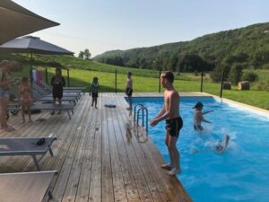 Natuurlijk genieten van rust en ruimte en even niks “moeten”? Op camping Vallée de Lignac beleef je met het hele gezin een heerlijke vakantie. Hoewel er alle ruimte is voor kinderen om te spelen en van alles te ontdekken, is het terrein overzichtelijk, zodat je nu echt eens kunt ontspannen en dat lekkere boek kunt lezen! Je hebt de keus uit verschillende verblijfsmogelijkheden: een gloednieuwe safaritent Cosy XL met 3 slaapkamers, een ingerichte safaritent Country of een safaritent Cosy met stoffen binnenwanden of een safaritent Cabin of Cabin XL met houten scheidingswanden, een comfortabele gîte of je eigen tent/caravan. Wat het ook wordt, het is een perfecte uitvalsbasis voor de schitterende omgeving. De camping heeft in totaal 23 plaatsen (15 safaritenten en 8 vrije kampeerplaatsen) en 1 gîte, er is een verwarmd zwembad en ook nog 2 verwarmde pierebadjes met glijbaantje, een speeltuin met klimtorens, glijbaan, touwbruggen en grote zandbak. Ook is er een grote trampoline, een schommel, een tafeltennistafel, een tafelvoetbalspel en zijn er skelters in meerdere formaten. Op het terras, met schitterend uitzicht over de vallei en de weilanden, ben je van harte welkom voor een heerlijke koffie, een vers tapbiertje, een mooie cocktail/mocktail of een ander lekker drankje. Er is gratis WiFi op het terras. ‘s Avonds kun je hier, samen met de andere gasten, genieten van de table d’hôtes, de vers gemaakte pizza’s of een heerlijke plat du jour! Voor de kids is er een speciaal kindermenu en in de peuterweken eten de kleintjes tot 4 jaar gratis mee met de table d’hotes !