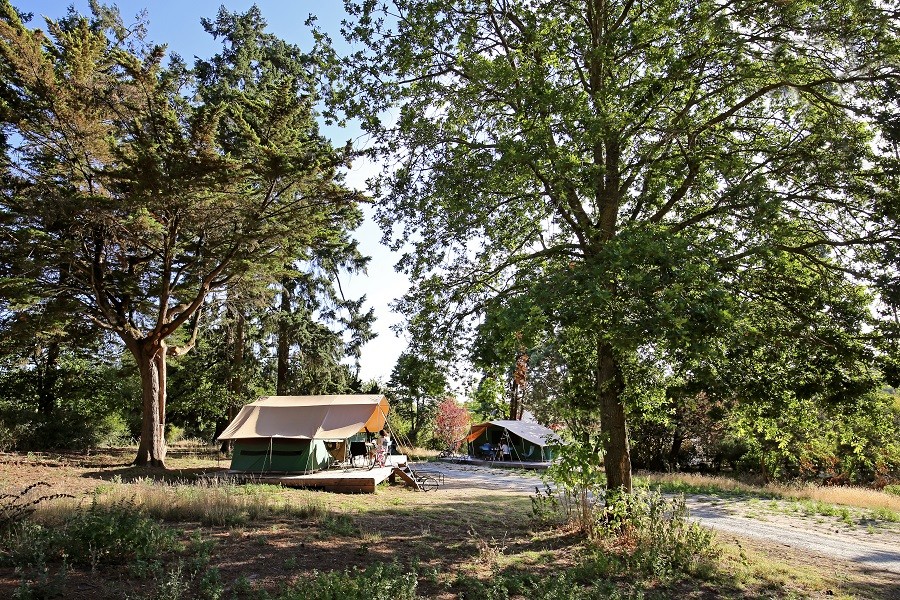 Je verblijft hier met je eigen caravan, camper of tent op een mooi staplaats of je kiest voor een accommodatie met alle comfort; er zijn volledig ingerichte Toile & Bois tenten, chalets en stacaravans.