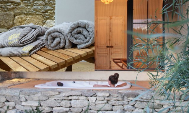 koelen.De sfeervolle wellness ligt verscholen tussen de oude kasteelmuren en heeft uitzicht op de jonge olijfgaard.