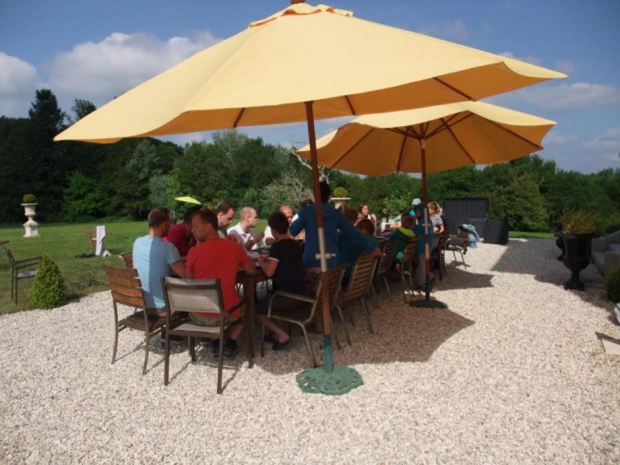 In de zomer wordt er buiten gegeten op het terras voor het château. Is het toch wat te koud voor buiten, dan dineer je in de oude "salle à manger" van het château.