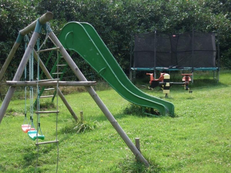 Beneden is een gemeenschappelijk woonkamertje waar je zelf drankjes kan pakken en waar je bij slechter weer kunt zitten en de kinderen kunnen spelen in de speelhoek. Buiten zijn er meerdere zitjes, ligstoelen, een zwembad, een tafeltennistafel, een trampoline en een speeltuin. En heel veel ruimte om lekker te spelen en te ballen. Er is zelfs een wandeling van een kwartiertje mogelijk over het landgoed.