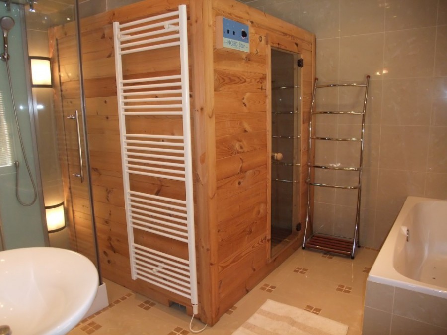 bad, terras en ligstoelen. Zowel binnen als buiten is ook hier heel veel speelruimte. Maar ook als je hier logeert, mag je gebruik maken van de speeltuin, trampoline, etc. op het landgoed en van de speelkamer in het chateau.