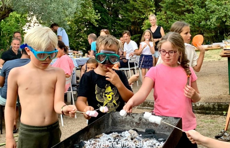 Op woensdagavond wordt er een gezamenlijke barbecue georganiseerd: iedereen regelt zijn eigen vlees, vis of vega (wordt vaak ook centraal geregeld door een barbecue-vader) en brengt twee lekkere schotels in. Na de barbecue is er voor de kinderen disco-zwemmen met drankjes en chips. Vaak volgt er nog een “afterparty” bij kampvuur (sommige ouders geven niet snel op!).