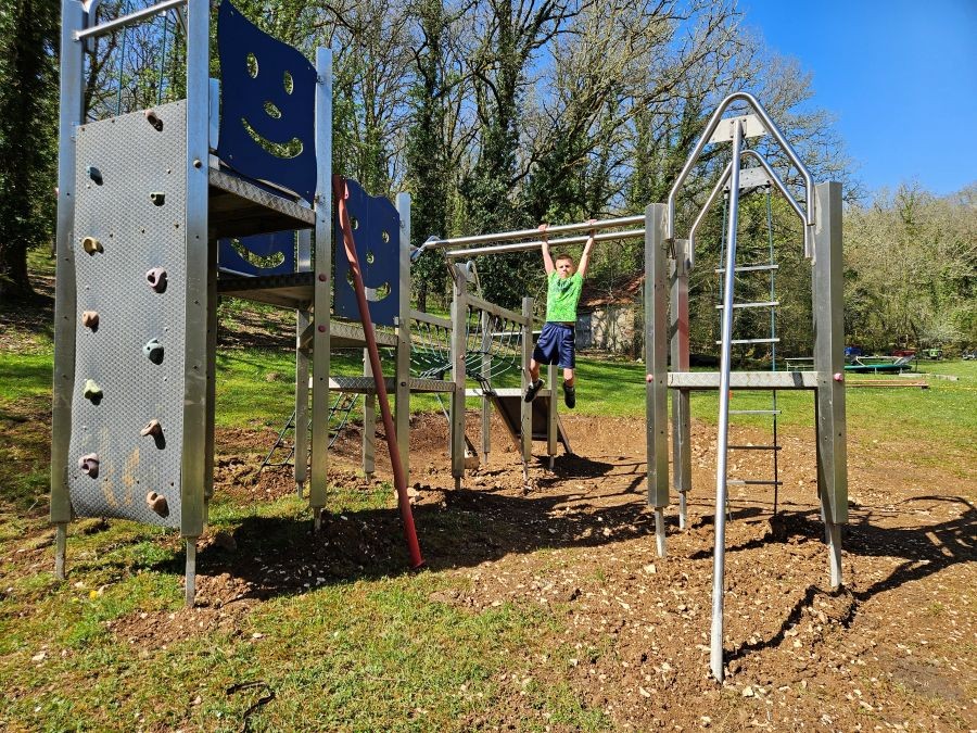 In de vallei ligt het verwarmde zwembad, de speelweide, de boomgaard met diverse fruitbomen waaronder appels, kersen, noten, vijgen en kiwi’s. In het park zijn op verschillende plaatsen zitjes gecreëerd van waaruit je kunt genieten van de rust en de stilte. Ook is er een relaxruimte gerealiseerd voor de volwassenen met een sauna en een jacuzzi.