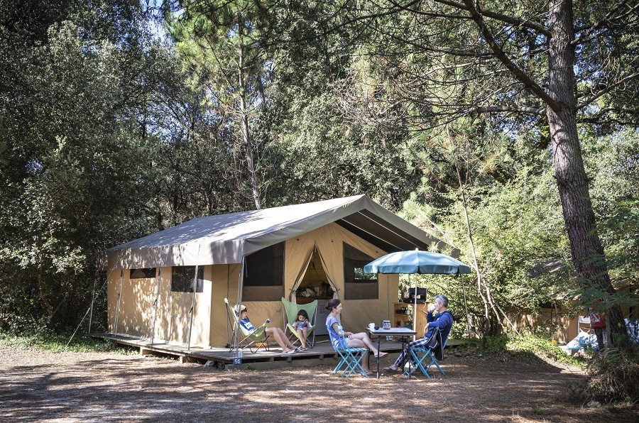 Toile & Bois tenten zijn mooie, lichte tenten die zowel functioneel als comfortabel zijn: je slaapt in gewone bedden, er is een keuken met keukenggerei en serviesgoed en een groot houten terras met tafel en stoelen. Hier zijn drie types Toile & Bois tenten: Classic IV 20m2 voor 4p, Classic V 25m2 voor 5p en Sweet 25m2 voor 5p met badkamer.