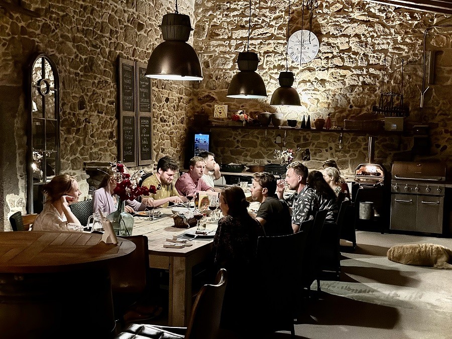 Op de zaterdag (aankomst) verzorgen wij een welkomstdiner, een ontspannen sfeer waarbij onze gasten elkaar ontmoeten en de kinderen gelijk ‘vriendjes’ maken. Daarnaast zien wij jullie graag twee keer in de week bij ons “aanschuiven” (table d'hôtes) en genieten van een bourgondisch drie-gangen diner in onze gezellige buitenhuiskamer.