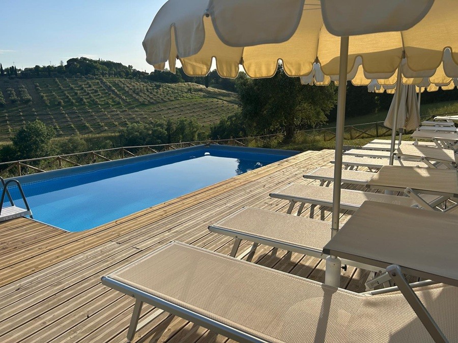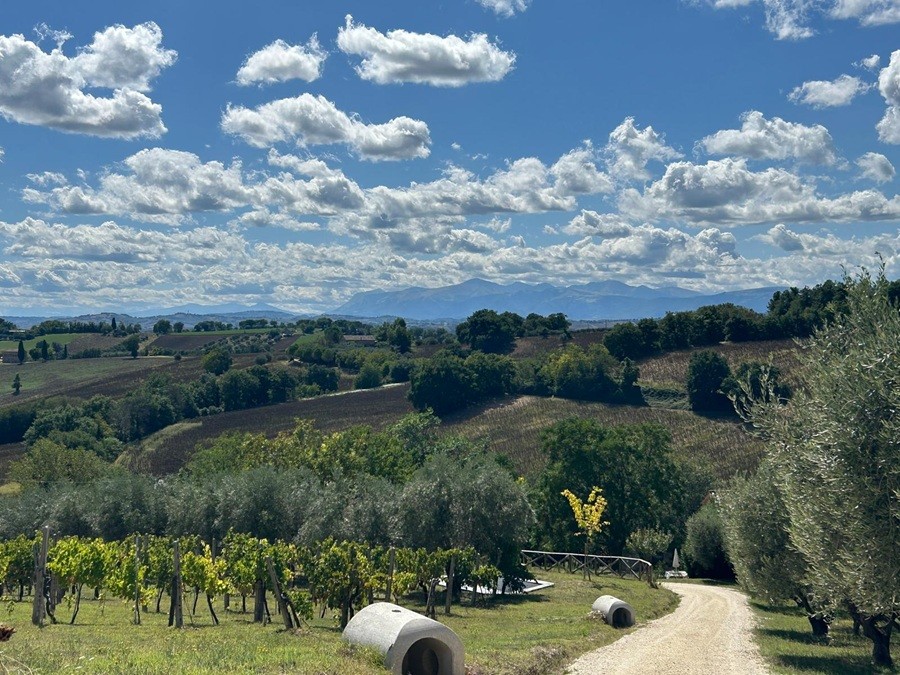 Agriturismo te midden van 6 hectare grond, omringd door olijfbomen, een kleine wijngaard en fruitbomen, met een adembenemend uitzicht op de Monte Sibillini en het schilderachtige dorpje Treia.