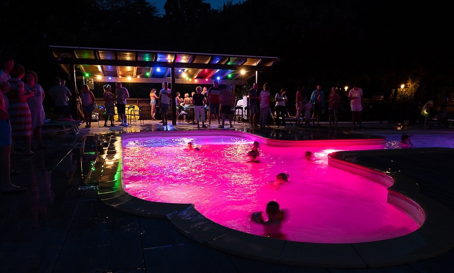 Op het terrein is een uniek, groot zwembad met kindergedeelte. Wekelijks wordt er voor de kinderen "discozwemmen" georganiseerd waarbij het zwembad in stijl verlicht is! Bij het zwembad is tevens een bar waar 's middags diverse cocktails en andere drankjes worden geserveerd en waar je een ijsje kunt bestellen.