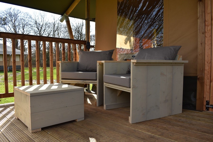 - terras met picknicktafel en 2 loungestoelen